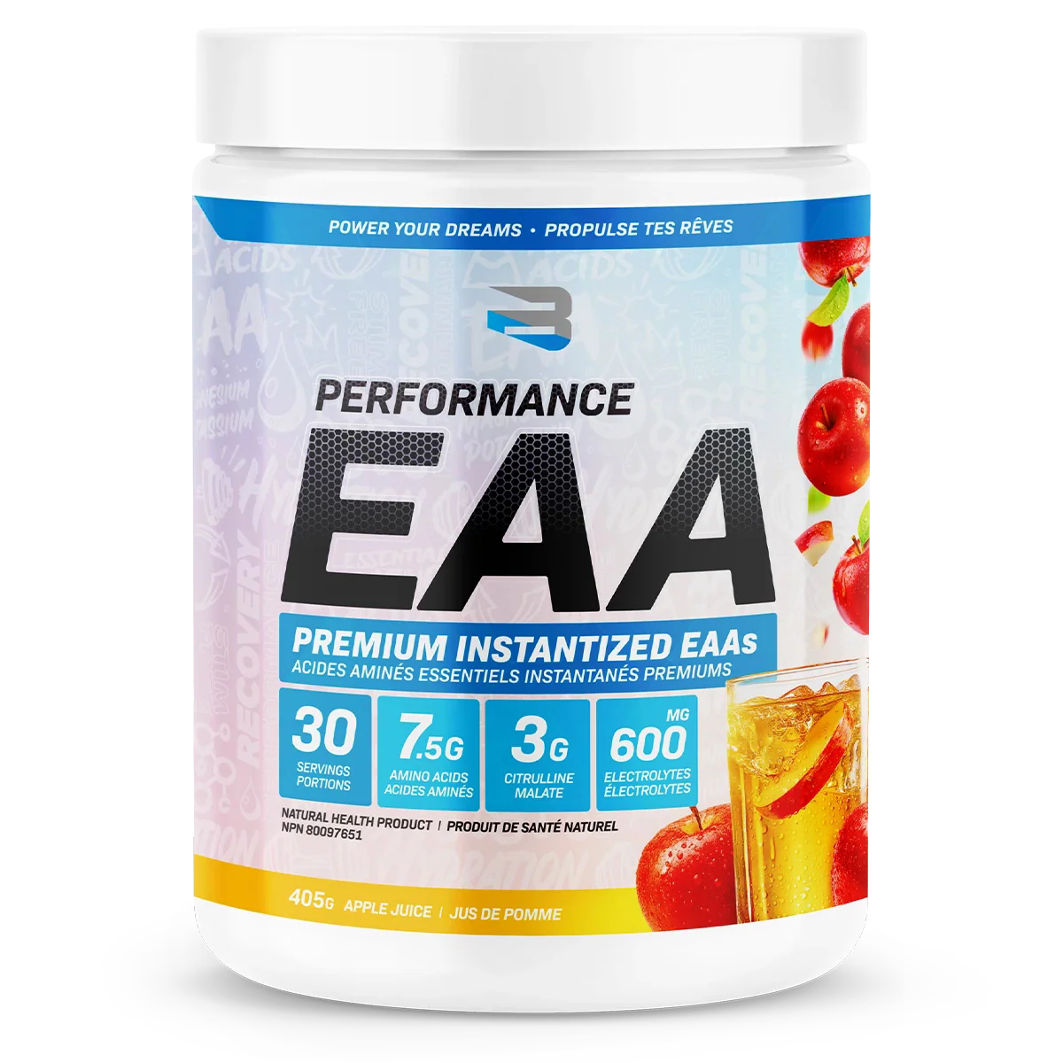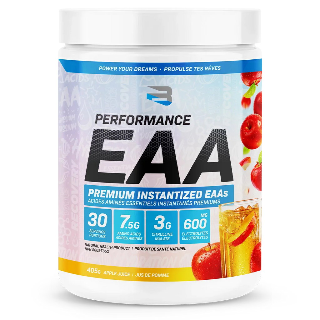Les acides aminés essentiels ne peuvent pas être produits par l'organisme et doivent être consommés. Les EAA sont composés de 9 acides aminés essentiels, dont les acides aminés à chaîne ramifiée (leucine, isoleucine, valine) et les 6 autres EAA (histidine, lysine, méthionine, phénylalanine, thréonine, tryptophane). Les acides aminés sont les éléments constitutifs des protéines, c'est pourquoi les EAA sont la clé de la synthèse des protéines pour construire le tissu musculaire !